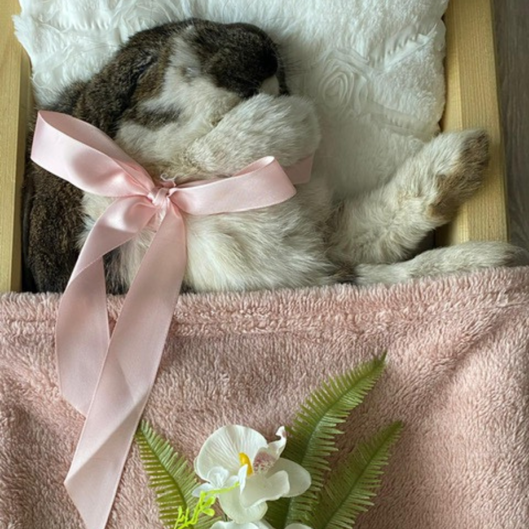 Op 1 juni 2016 op 4 augustus kwam je bij ons wonen. Je kreeg een goede thuis en alles wat je nodig had. Je mocht mee binnen in huis en had een ruim speel- en slaaphok buiten. Na een tijdje besloten we om voor jou een nieuw knuffelmaatje te zoeken. Toen kwam Flaurina er bij! In het begin was het niet met je volle zin maar na verloop van tijd konden jullie het goed met elkaar vinden. Toen we jullie verhuisden naar een nieuw hok was je super blij. In je super grote huis kreeg je er ook een hele konijnenfamilie bij. Je ontfermde je over hen en was zo blij om de moeder over hen te spelen. Alle 20 kleintjes nam je onder jouw vleugels. Wat was je toch lief voor hen. Op paasmaandag sloeg het noodlot toe. Je kwam te overlijden aan een fatale hartstilstand, je verliet het leven vredig naast Flaurina. Het verdriet is groot. We zullen je altijd blijven herinneren.